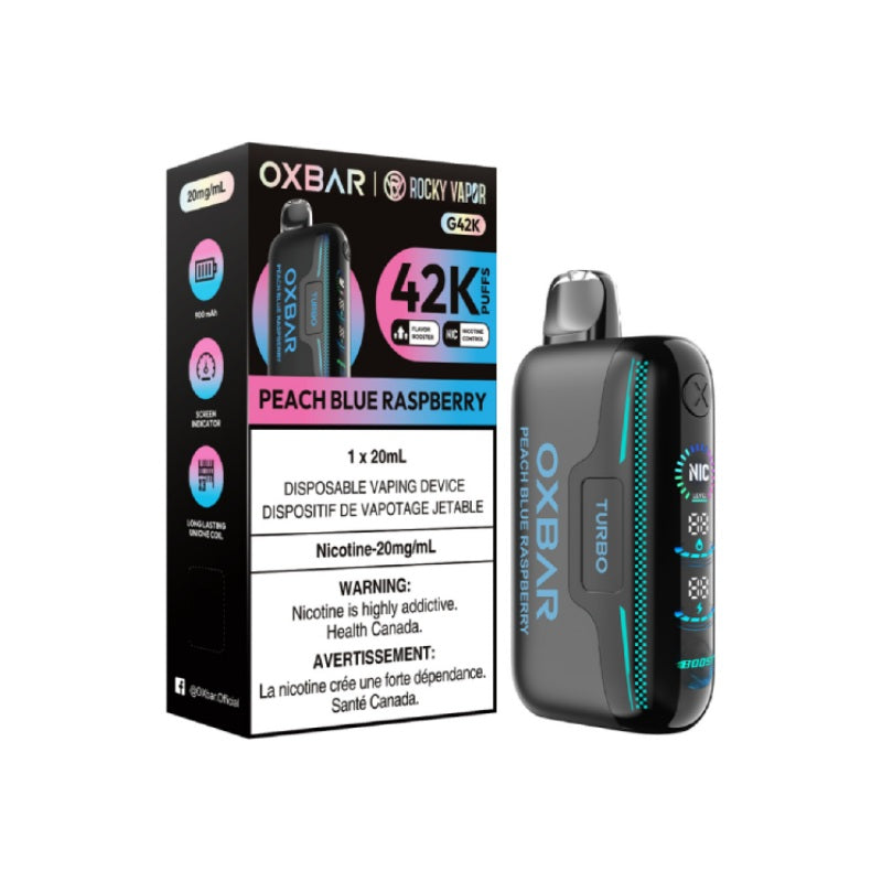 Discover the Peach Blue Raspberry OxBar G42K Disposable Vape: 42,000 Puffs and 20mL Capacity